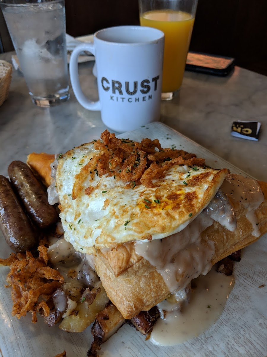 CRUST KITCHEN's menu is broad, covering crowd-pleasers across several categories—from brunch staples like Eggs & Waffles and various Benedicts to New American classics, such as their Paris Burger and BBQ Ribs. They also offer a solid range of sandwiches, including a fried chicken with Napa slaw and a triple-meat Crust Club. Those drawn to pasta will find dishes like Chicken Alfredo, and pizza lovers can take advantage of delivery options. A noticeable highlight is their coffee, praised for being reliably good and served in a setting that invites slow sipping.